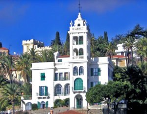 Guardando Bordighera dal mare, la visione di Villa Garnier, bianca circondata dal verde delle palme, affascina per la sua bellezza.